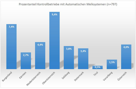 Grafik zu Anteil der LKV Betriebe mit AMS je Bundesland in Österreich: